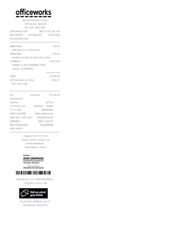 Officeworks Receipt 9308436004028251 | PDF