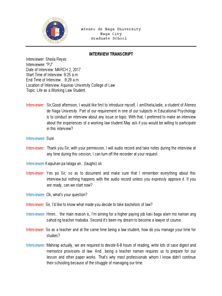 Sample Interview Transcript | PDF | Behavior Modification | Cognition