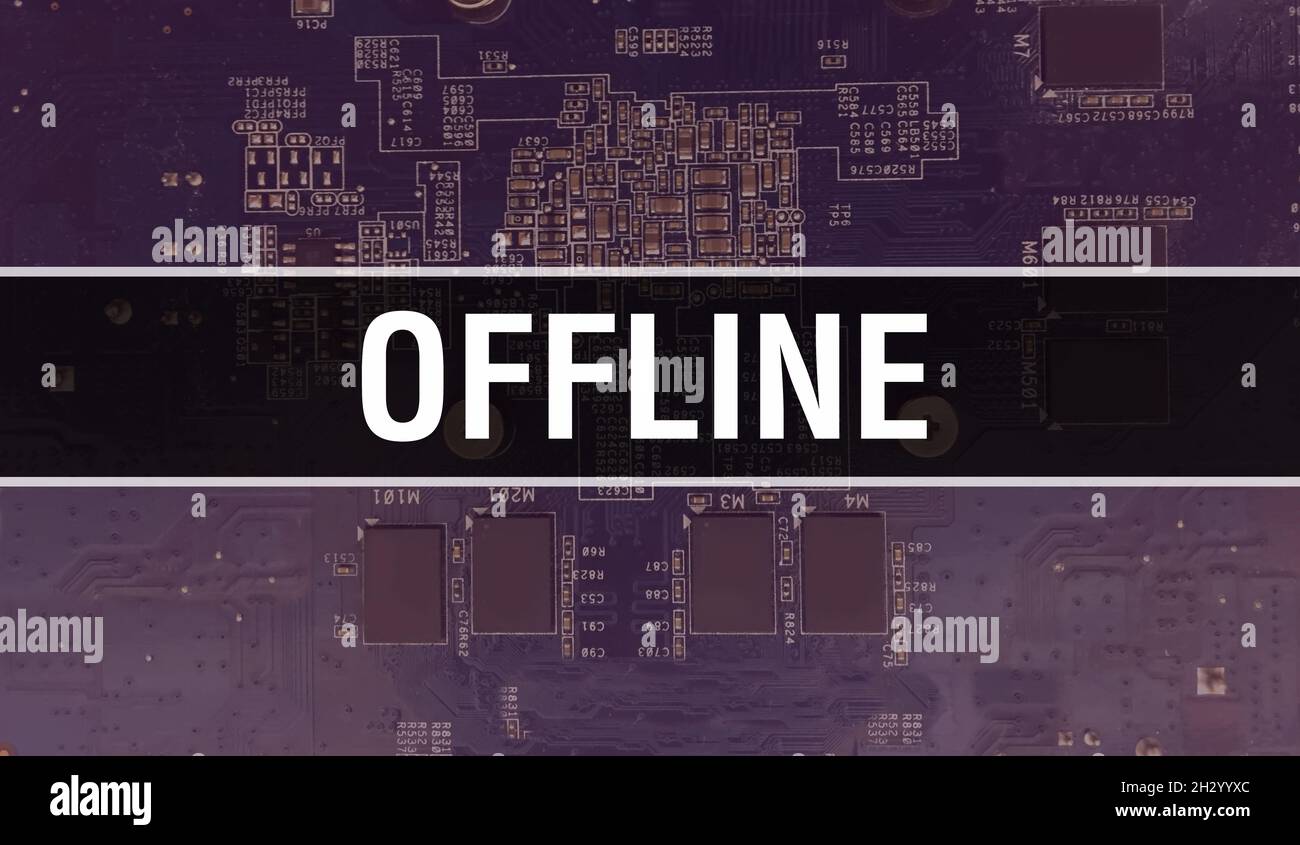 Sign displaying Offline. Word for Not having directly connected to a ...