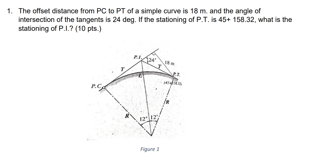 Solved 1. The offset distance from PC to PT of a simple | Chegg.com
