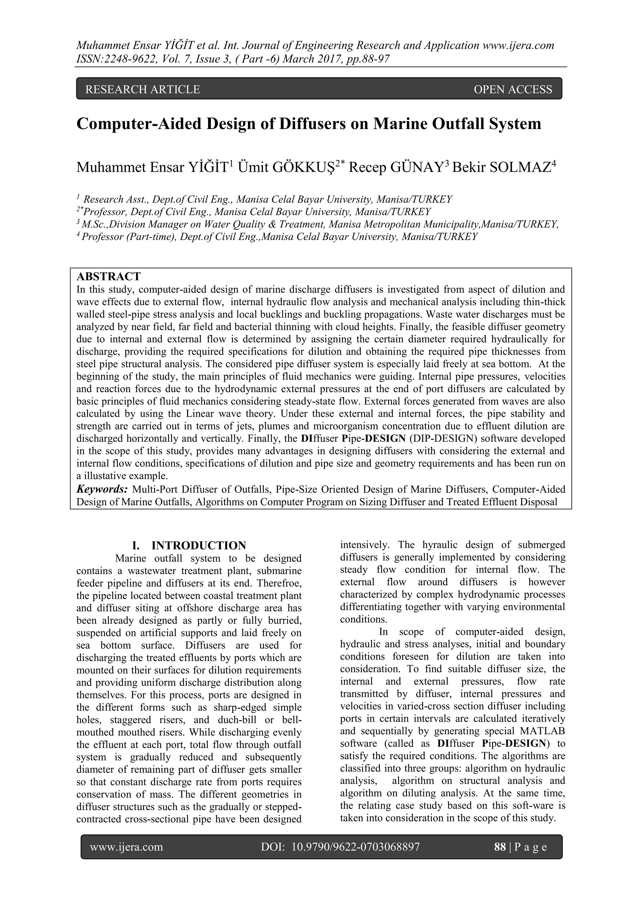 Computer-Aided Design of Diffusers on Marine Outfall System | PDF
