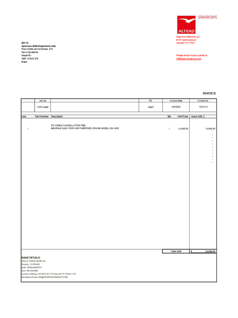 Invoice for Cancellation Fee - Sparrows Offshore | PDF | Freight ...