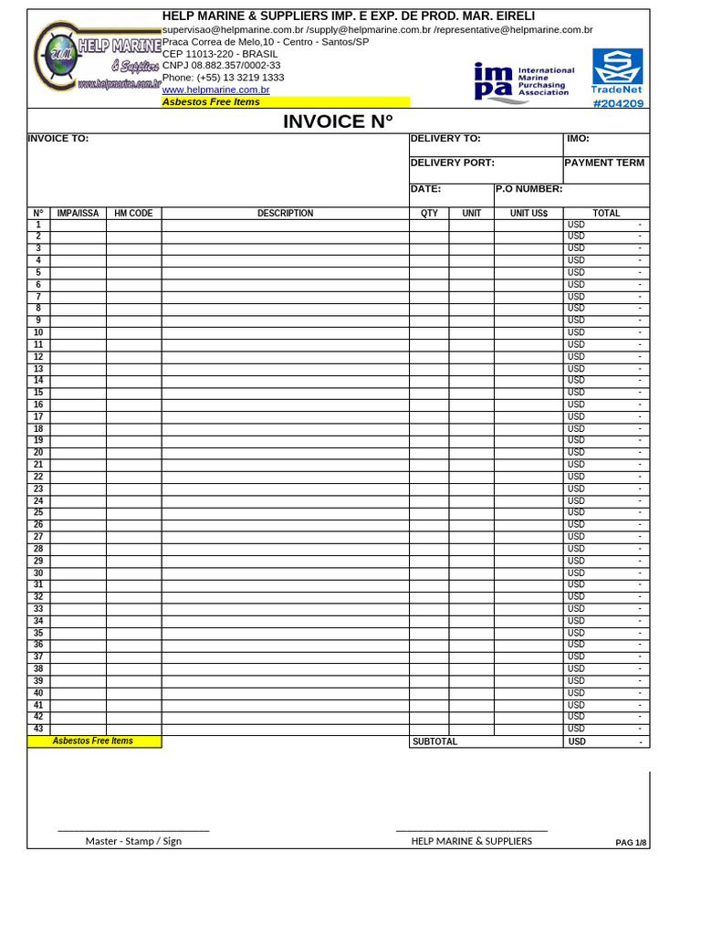 Marine Service Invoice Template | PDF