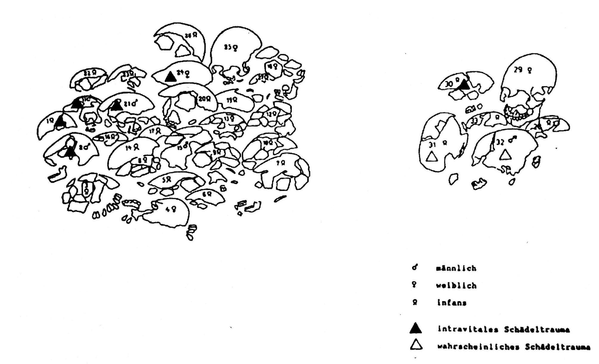 Ofnet skull deposit number 1 (after Peter-Rocher 2002). | Download ...
