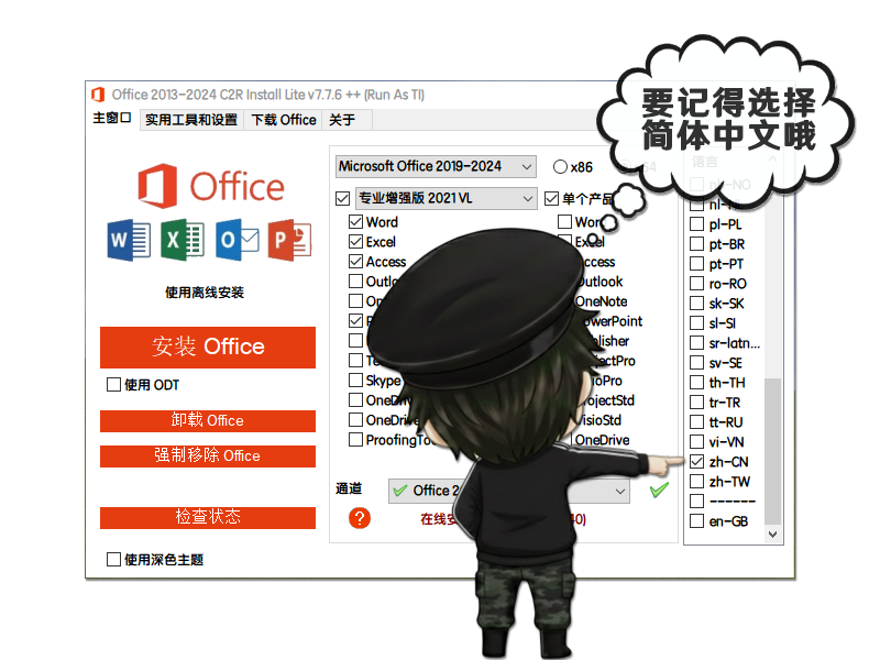 office下载安装自动激活工具_Office 2013-2024 C2R Install V7.7.7.7 中文绿色版 - 硬核站