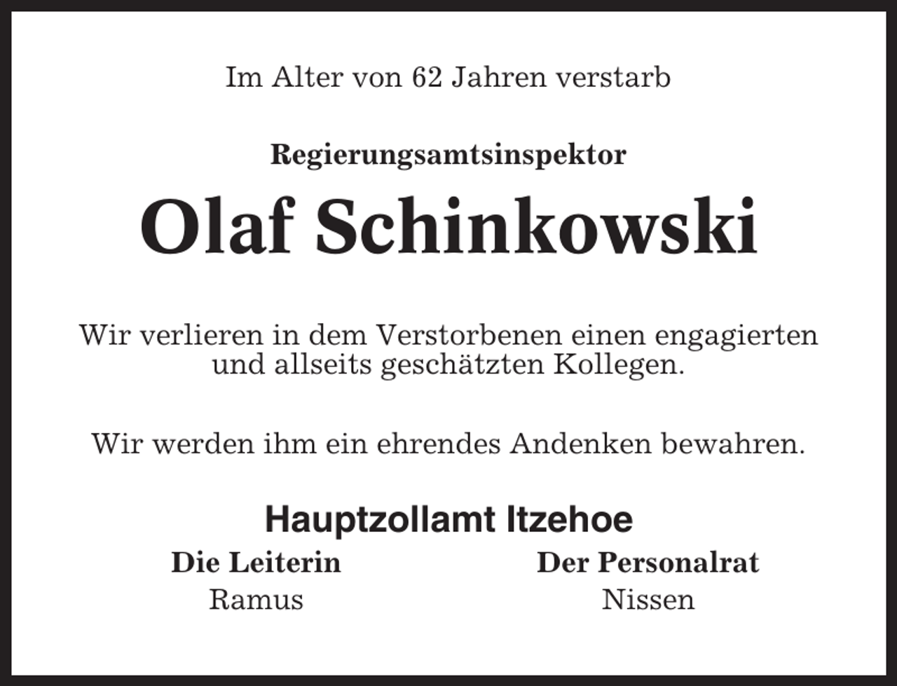 Olaf Schinkowski | Nach Familienanzeigen suchen - Nachrufe ...