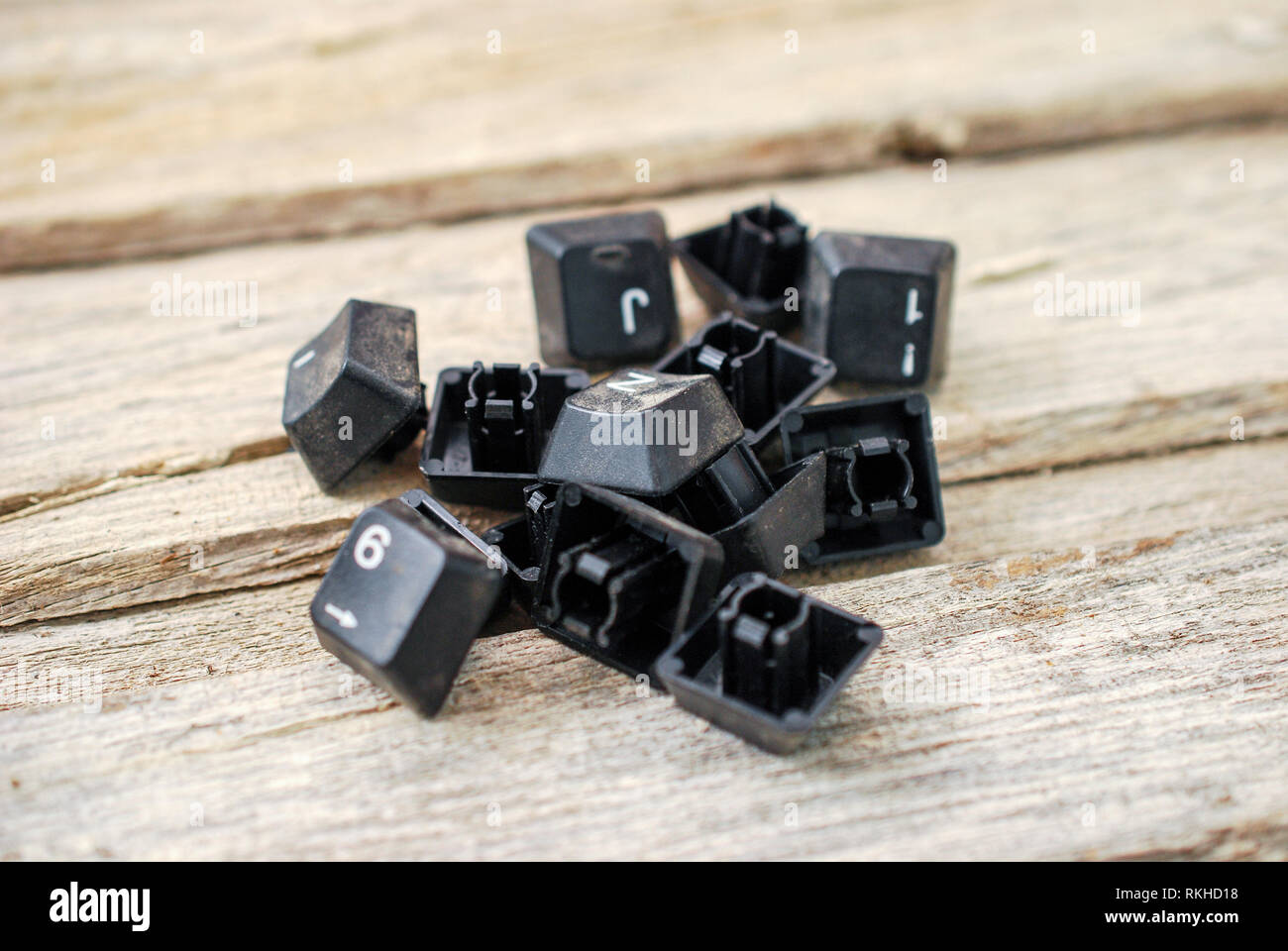 computer keyboard buttons on old wood background,image Stock Photo - Alamy