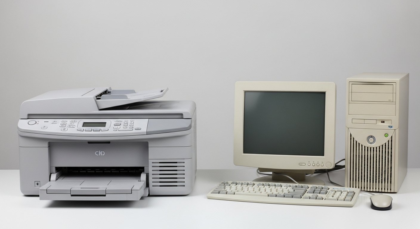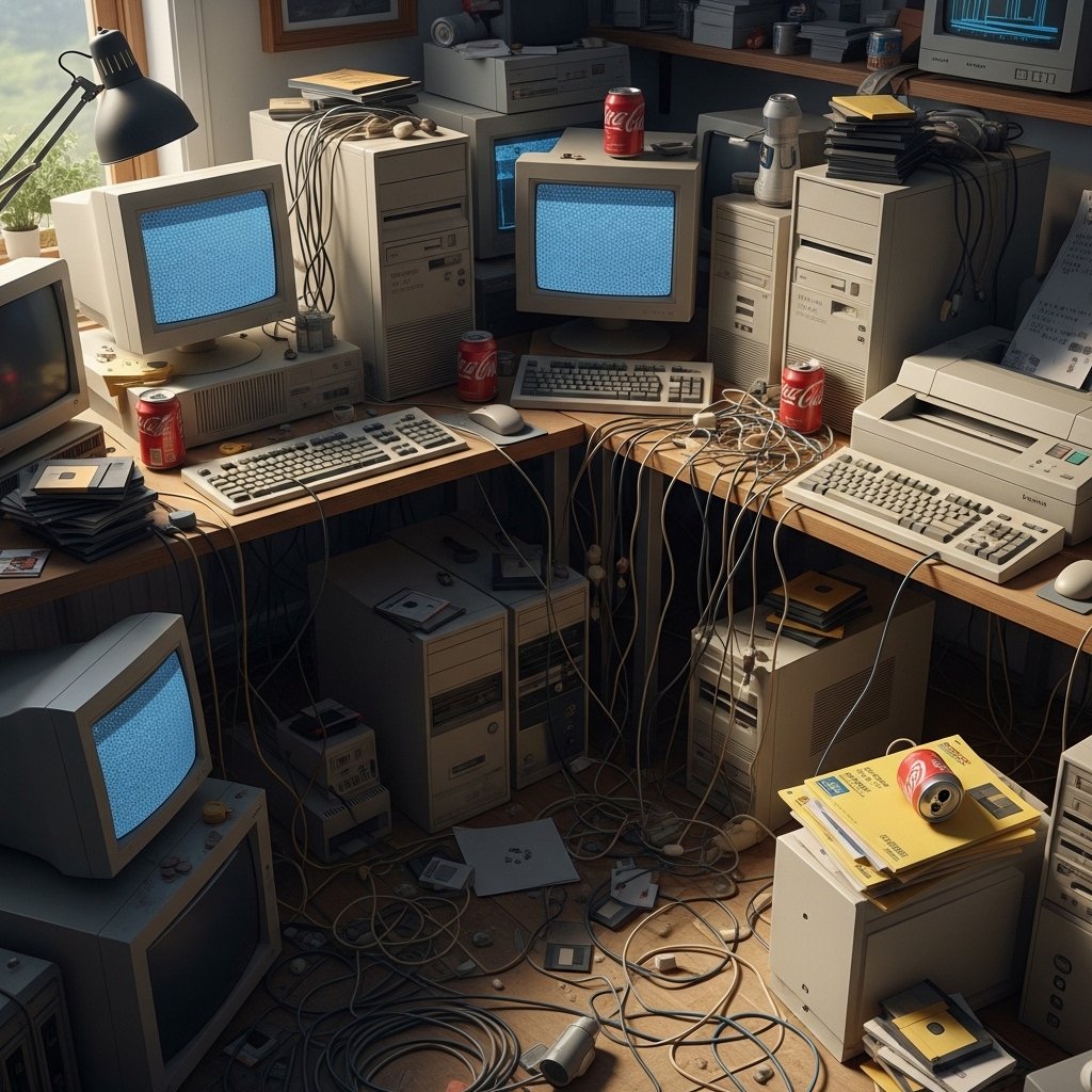 Photorealistic depiction of vintage computers from the 90s