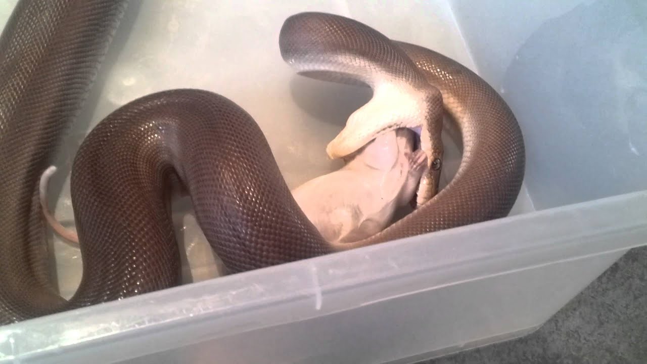 Olive Python eating a rat. Sped up x 16 - YouTube