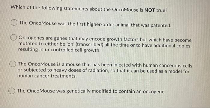 Solved Which of the following statements about the OncoMouse | Chegg.com