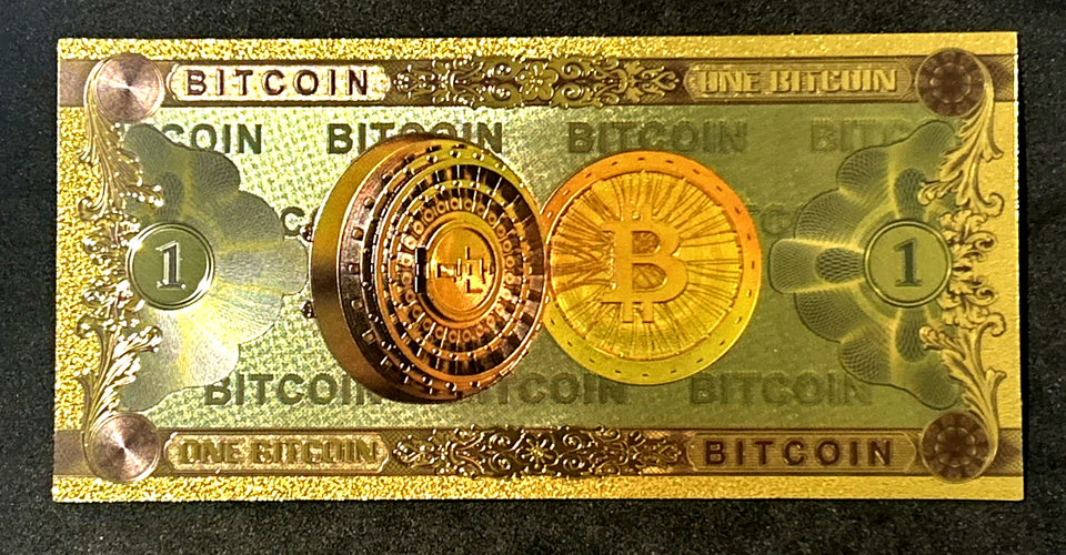 One Commemorative 1 Bitcoin BTC Bank Note Crypto Banknote 24K Gold Foil ...