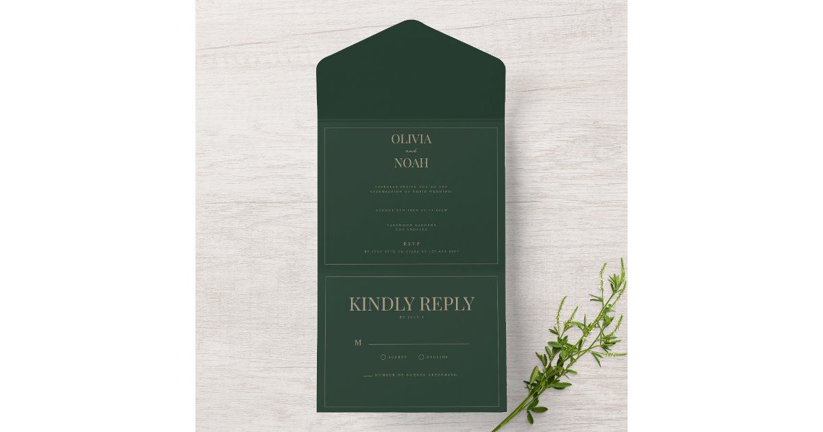 Modern & Elegant All In One Green Invitation Card | Zazzle