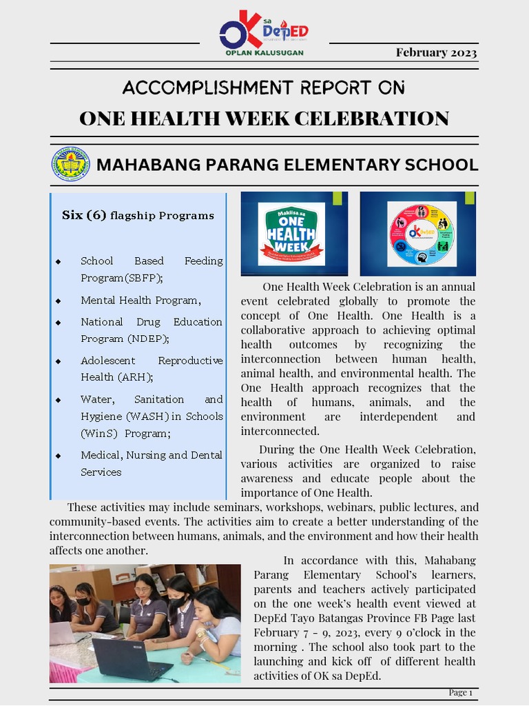 M.Parang ES - Accomplishment Report On One Health Week 2022-2023 ...