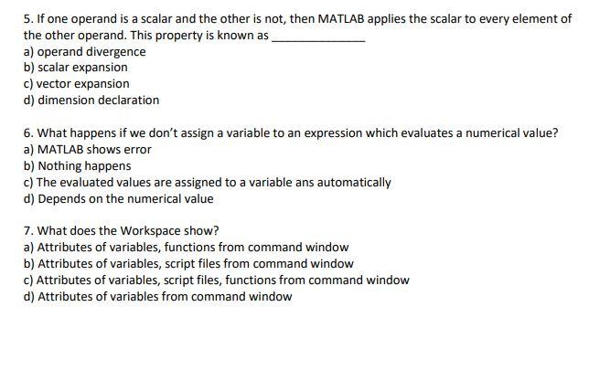 Solved 5. If one operand is a scalar and the other is not, | Chegg.com