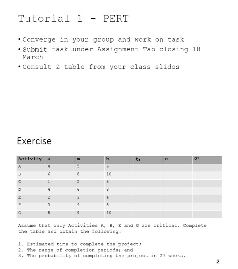 Tutorial 1 - PERT Exercise - Read-Only | PDF