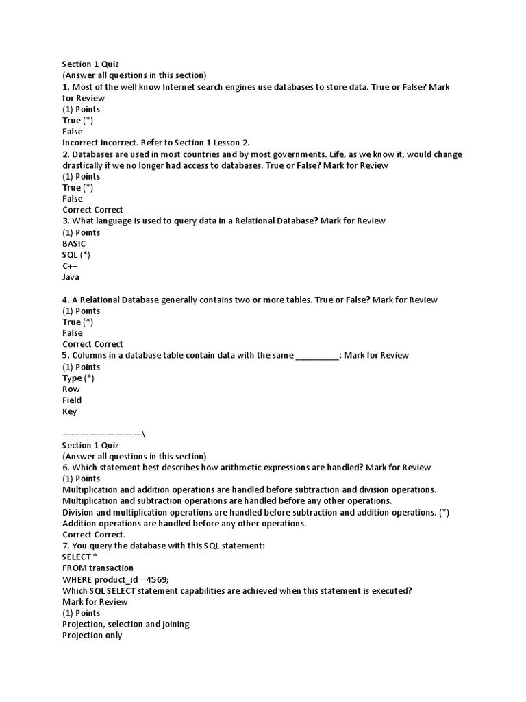 Section 1 Quiz - Oracle | PDF | Databases | Computer Programming