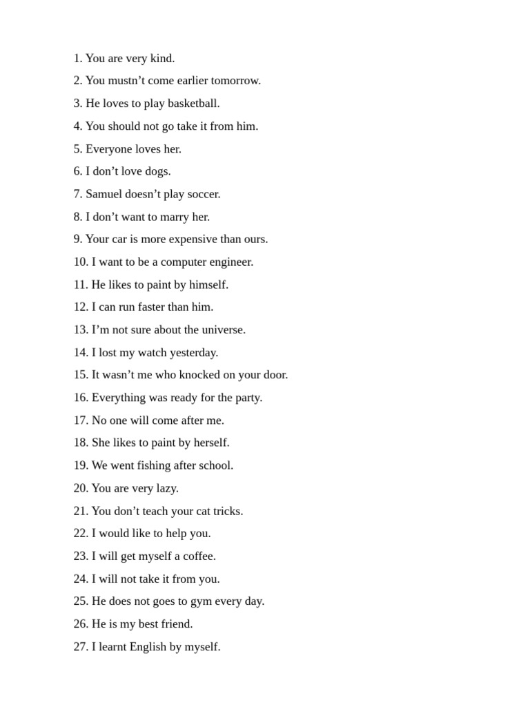50 examples of simple sentences - English Grammar Here