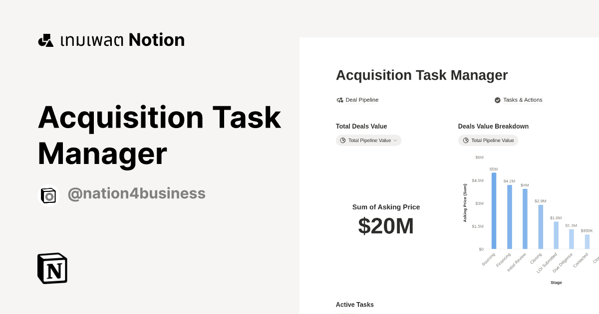 เทมเพลต Acquisition Task Manager | มาร์เก็ตเพลส Notion