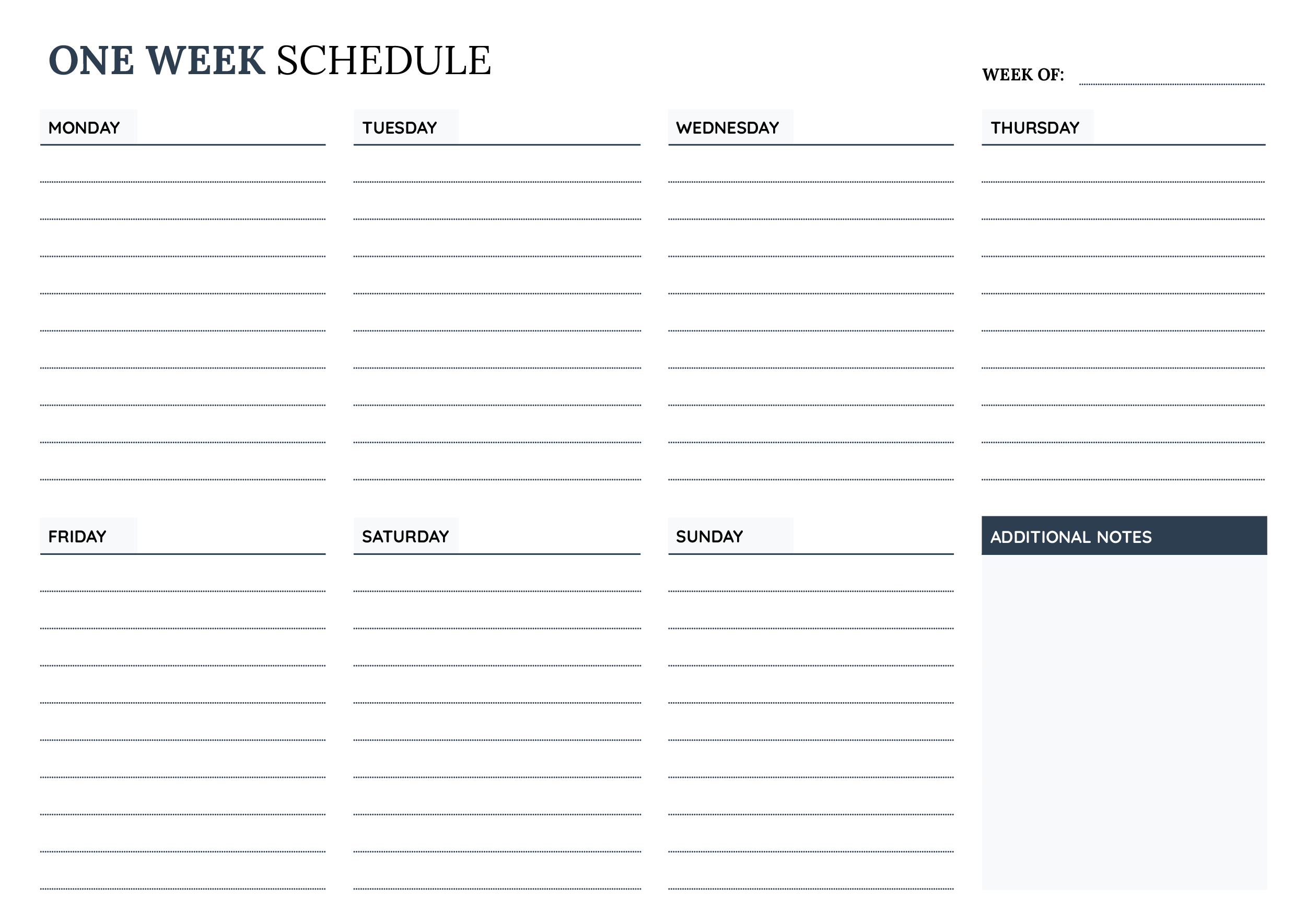 One Week Schedule Template – Peterainsworth