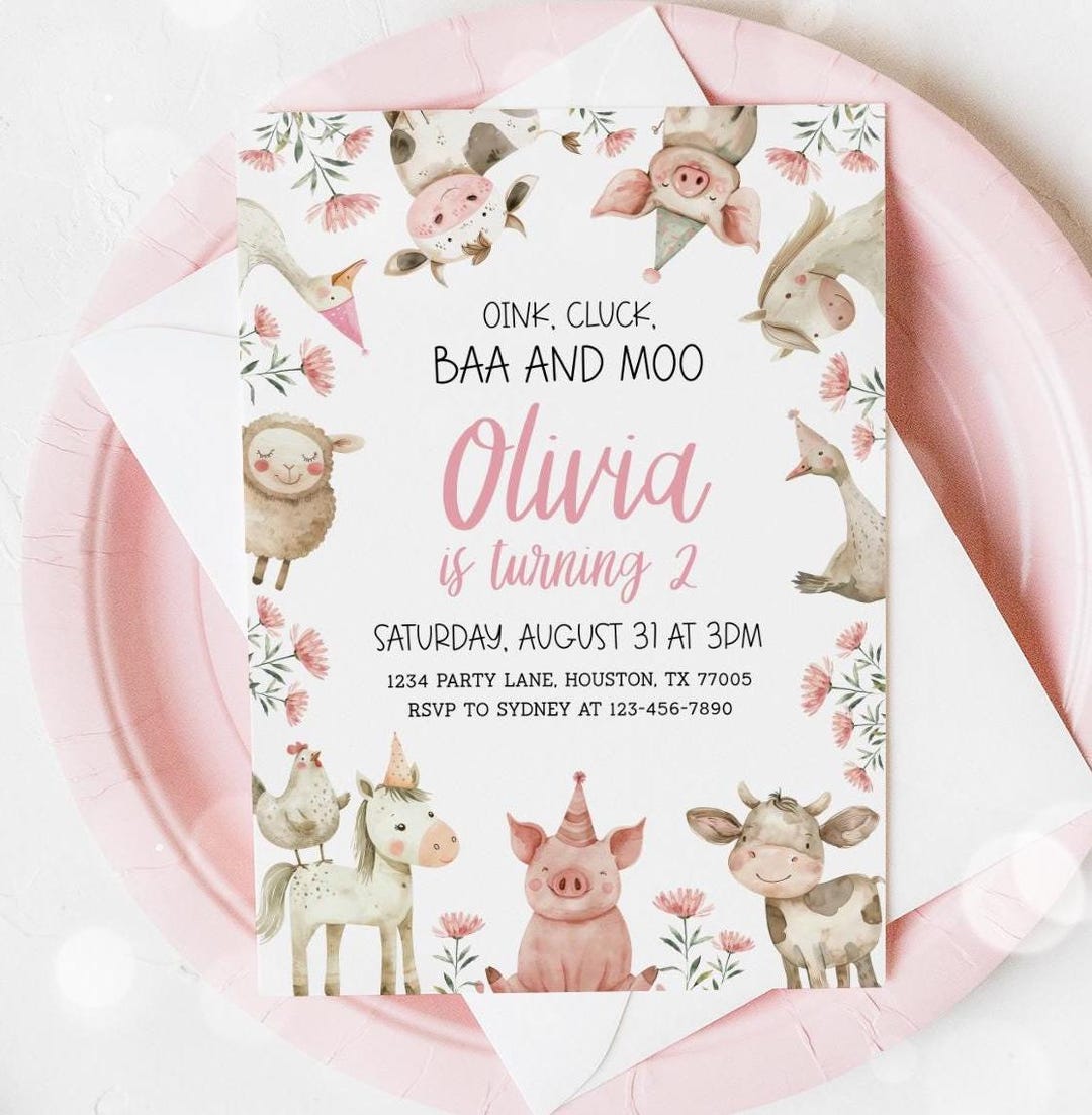 Baa Oink Moo I'm Two Invitation, Farm Girl 2nd Birthday Party, Barnyard ...