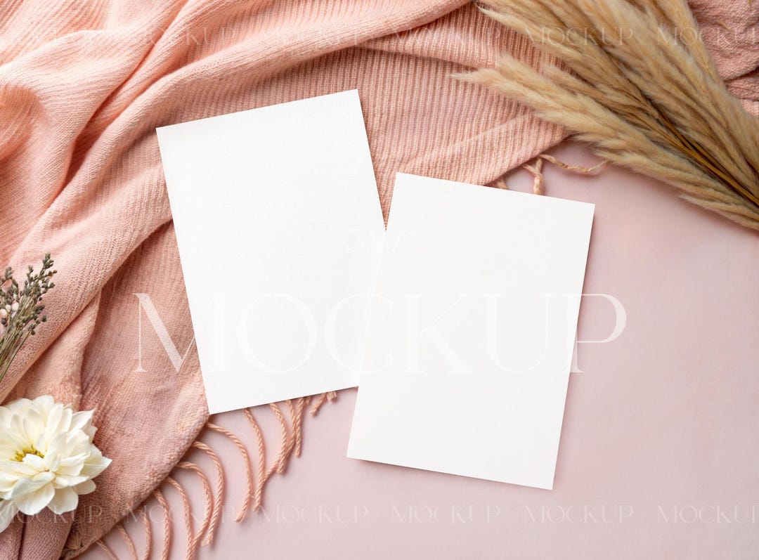 Two Invitation Card Mockup, Double Cards Mockup, Bridal Shower Mockup ...