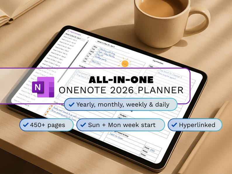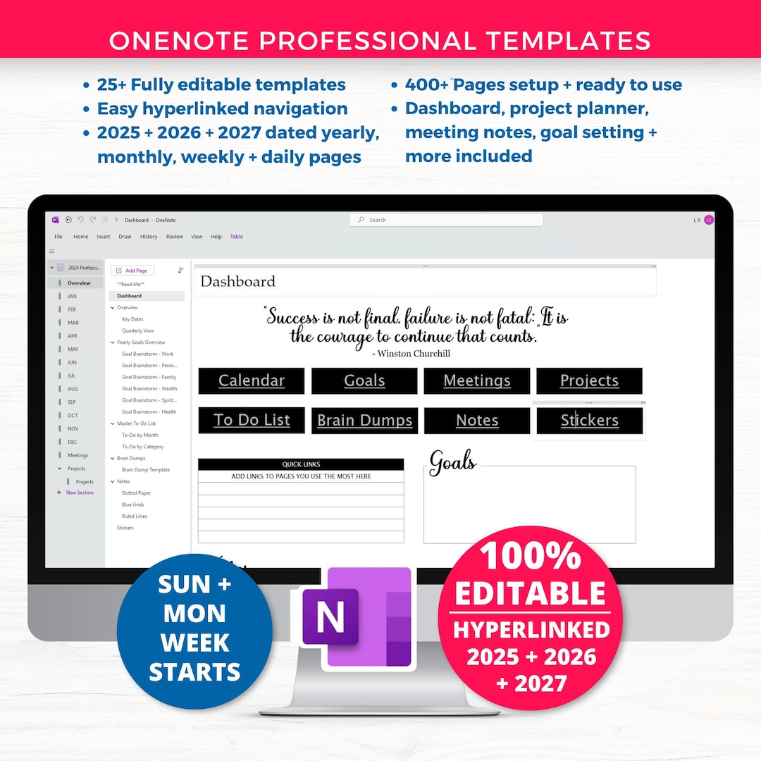Onenote 2026 Professional Planner, One Note Template, Hyperlinked ...