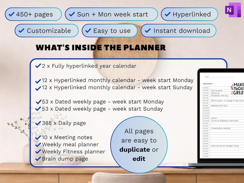 Onenote Digital Planner 2024 2025 , Hyperlinked Onenote Planner ...