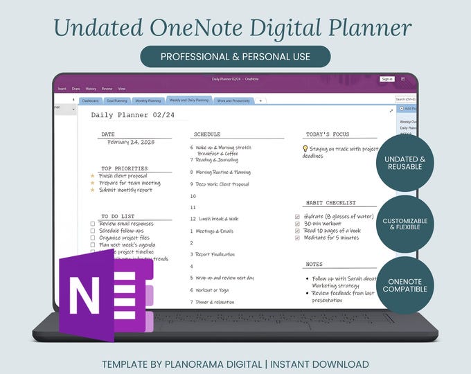 OneNote Planner 2024 2025 Professional One Note Template For Project ...