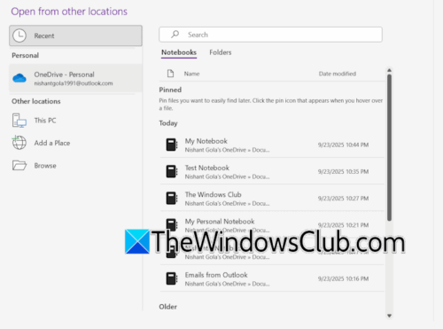 OneNote opens different lists of notebooks - Microsoft Q&A