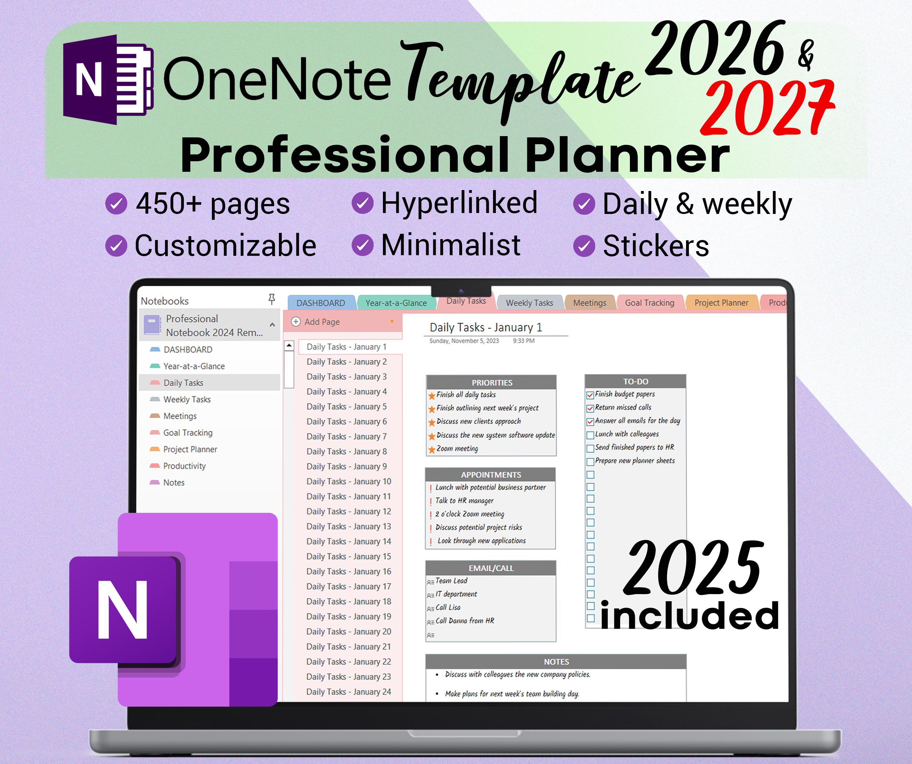 Onenote Planner for Work, 2024 2025 Onenote Professional Template for ...