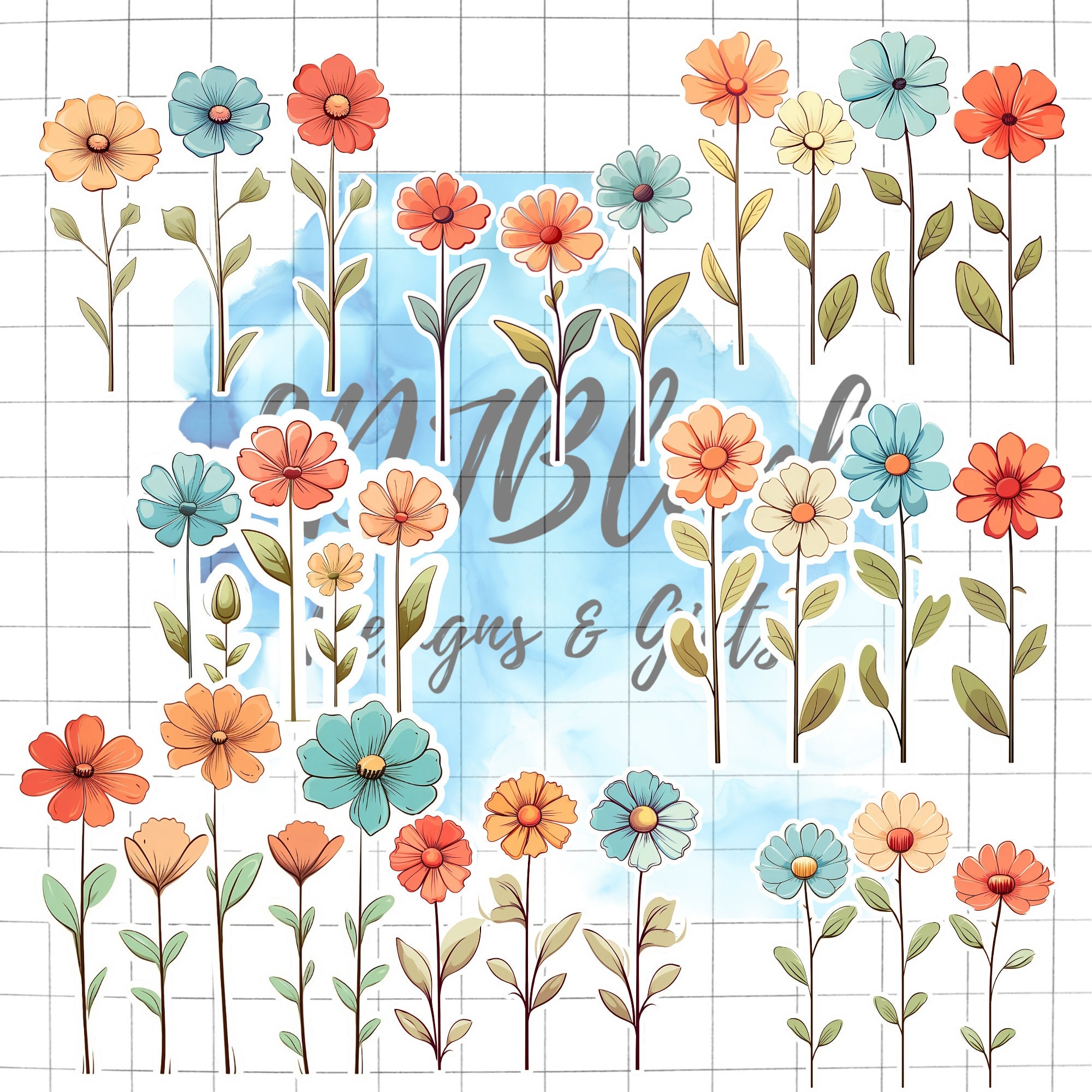 Floral Doodles Digital Stickers, Floral Stickers, Goodnotes Stickers ...