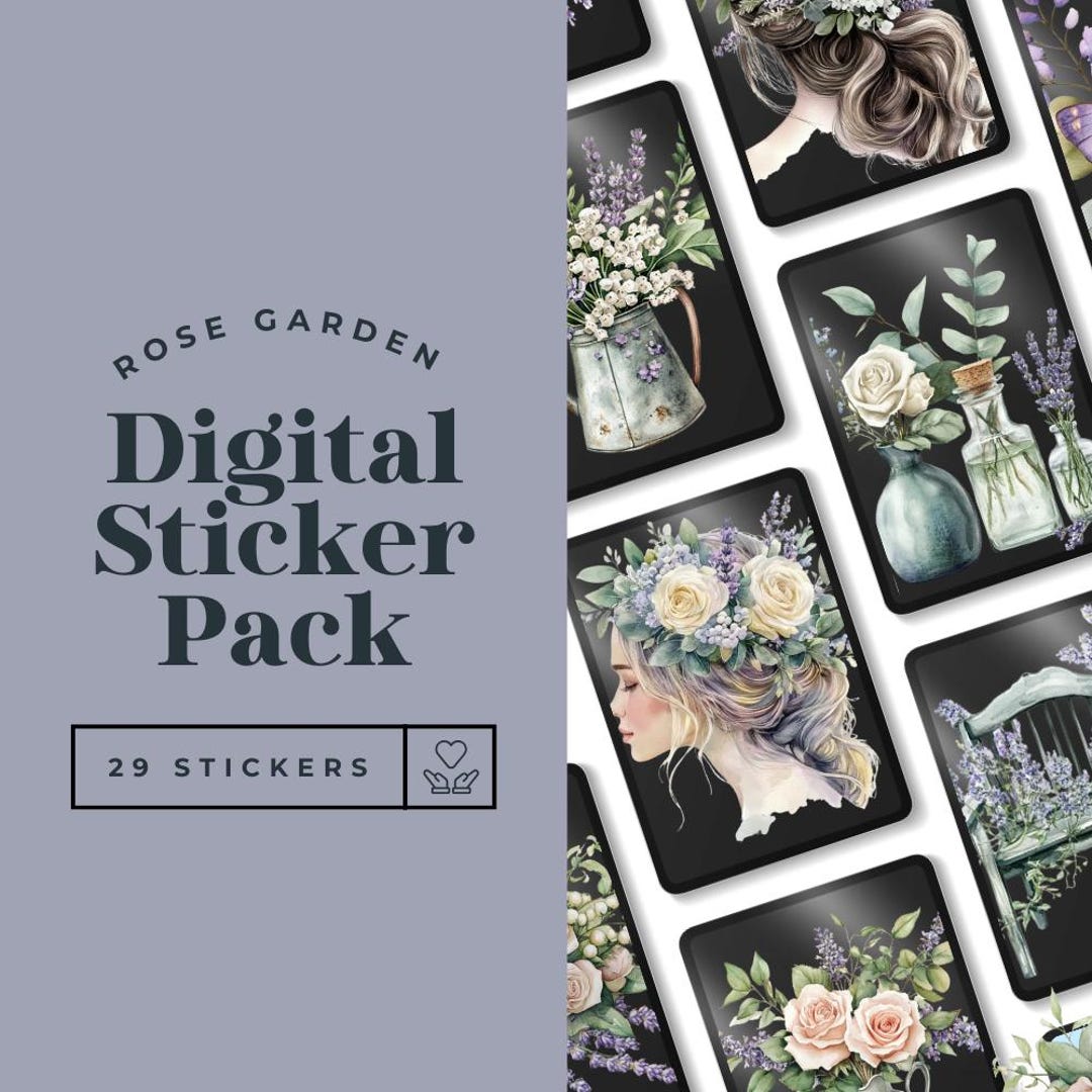 Digital Stickers, Rose Garden, Flowers, Lavender, Pastel, Soft Pinks ...