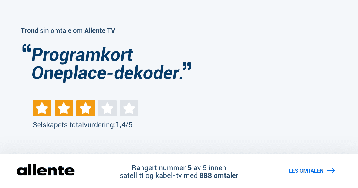 Allente TV: Programkort Oneplace-dekoder. - Omtale av Trond
