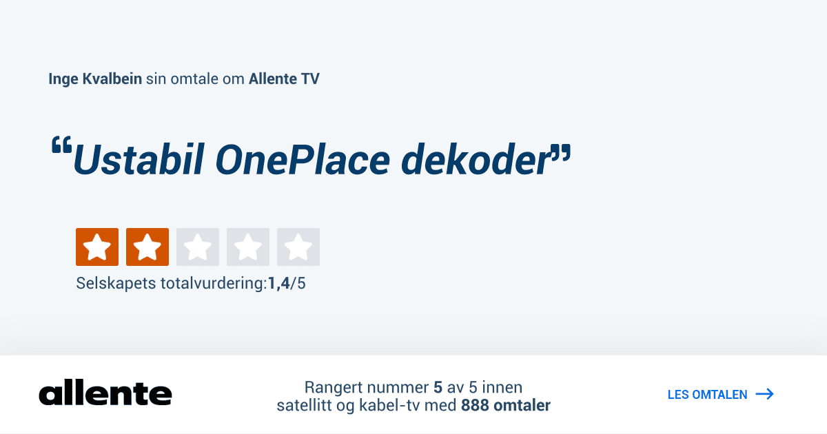 Allente TV: Ustabil OnePlace dekoder - Omtale av Inge K