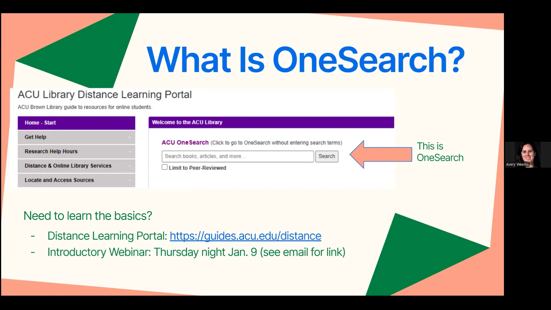 Research Support Workshop: Introducing OneSearch- Get to know the Evans ...