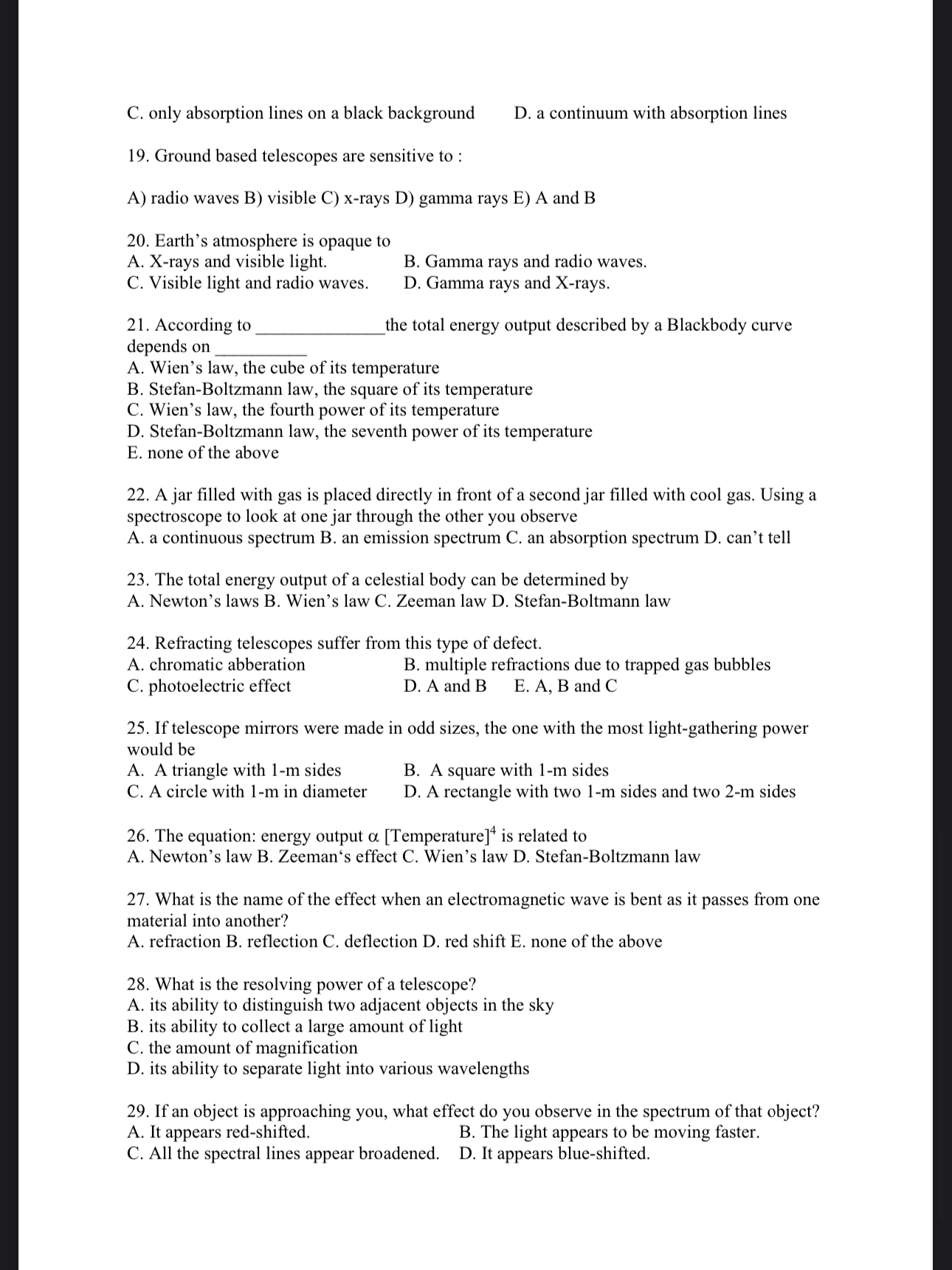 C. only absorption lines on a black backgroundD. a | Chegg.com
