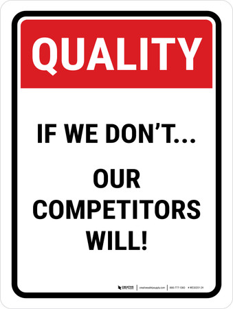Quality: If we don't our competitors will Portrait - Wall Sign