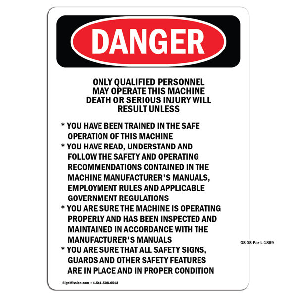 SignMission Qualified Personnel Operate This Machine Sign | Wayfair