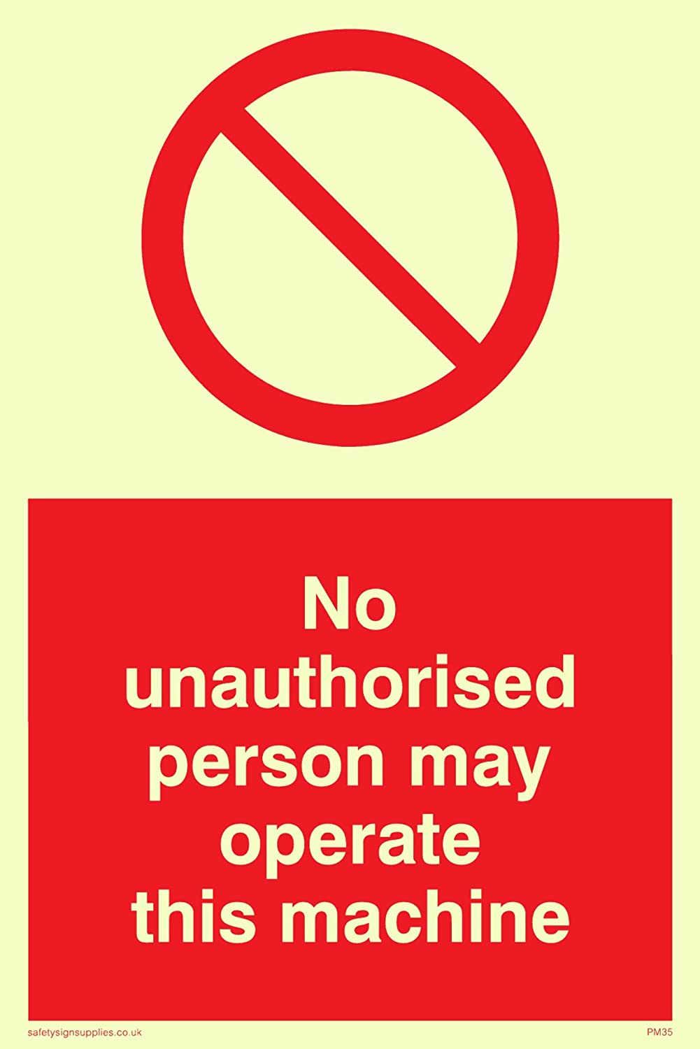 Viking Signs PM35-A6P-PV”No Unauthorised Person May Operate This ...