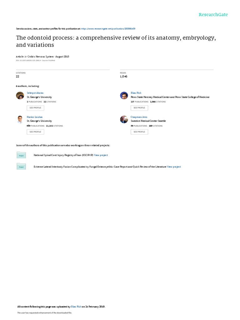 The odontoid process: a comprehensive review of its anatomy, embryology ...