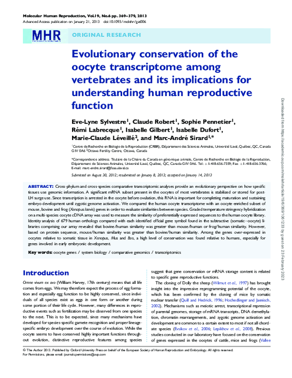 (PDF) Evolutionary conservation of the oocyte transcriptome among ...