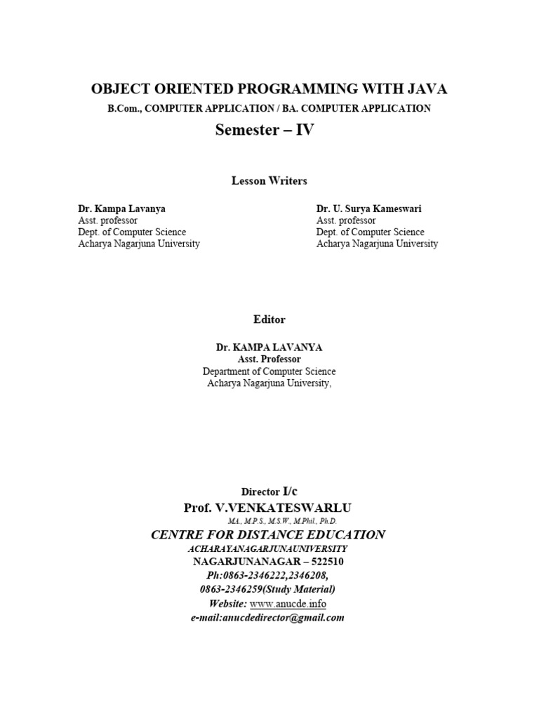 OBJECT ORIENTED PROGRAMMING USING JAVA 1 (Third Year TYBSc Computer ...