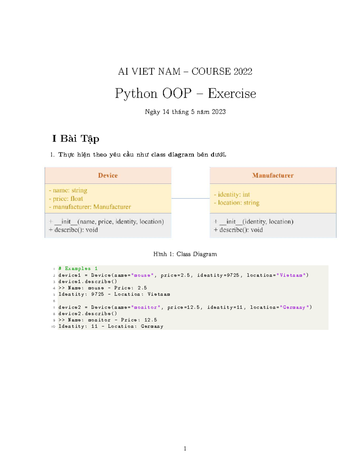 Python OOP Exercise - AI VIET NAM COURSE 2022 - Studocu