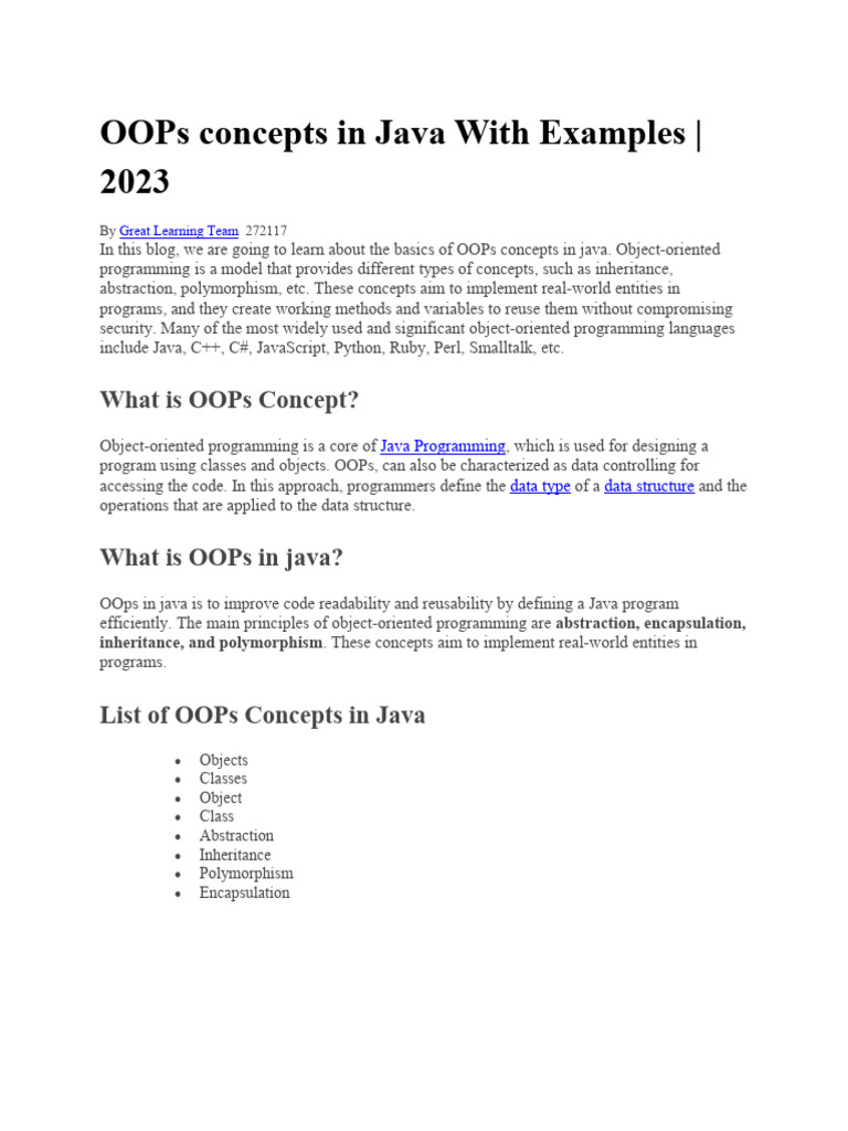 OOPS Concepts in Java: Key Principles and Examples - Studocu