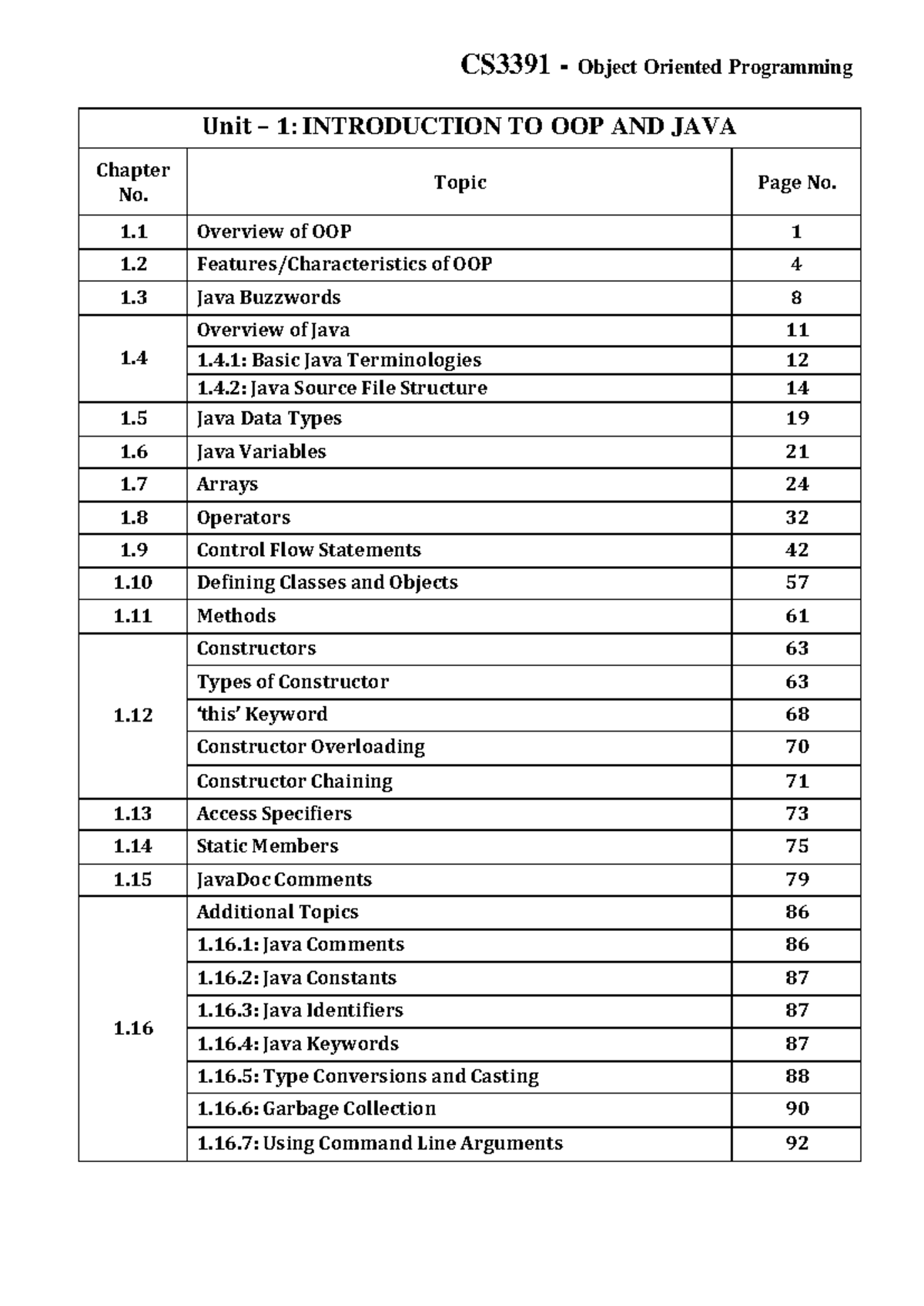 OOPs -Unit-1F - Oop notes - Unit – 1: INTRODUCTION TO OOP AND JAVA ...