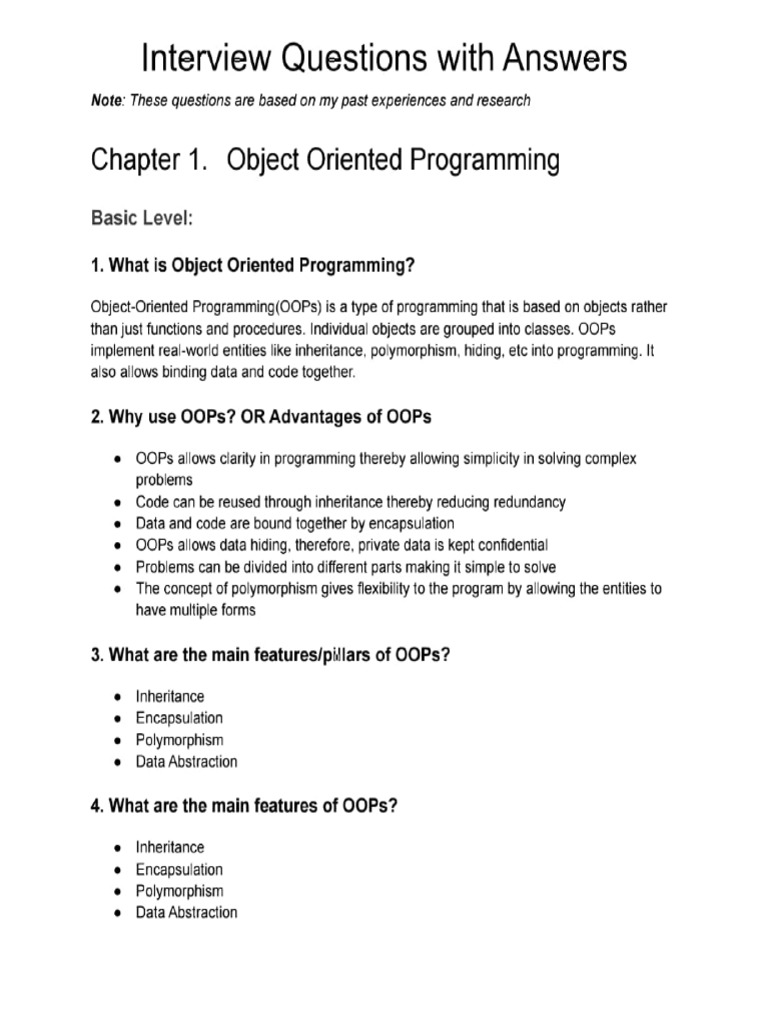 OOPS in Java: Comprehensive Interview Questions & Answers - Studocu