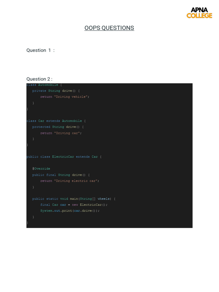 Very Important Java OOPS Interview Questions and Answers | PDF | Method ...