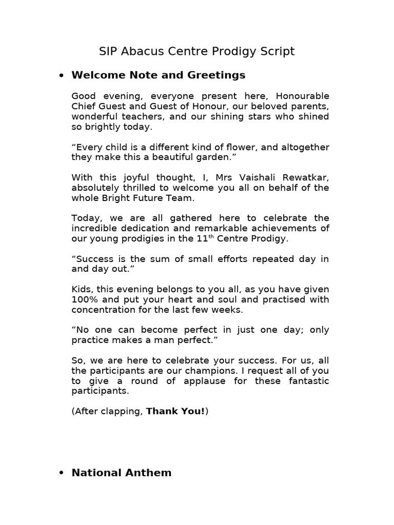 SIP Abacus Centre Prodigy Script | PDF | Applause