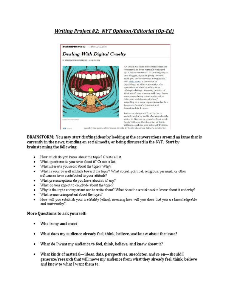 Op-Ed Instructions and Assignment Outline - Op-Ed Assignment SOC 215 ...