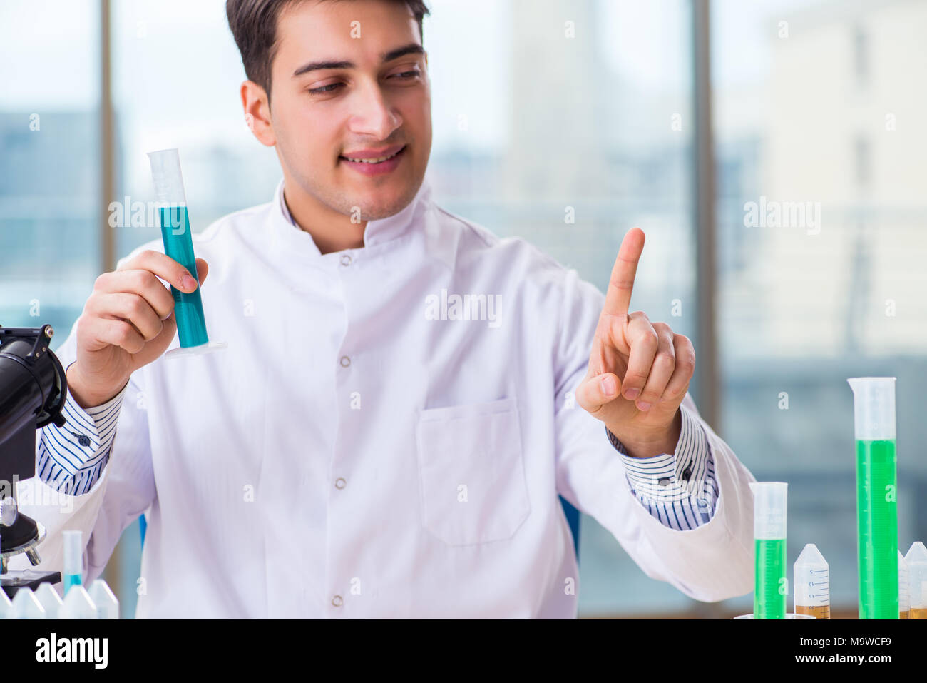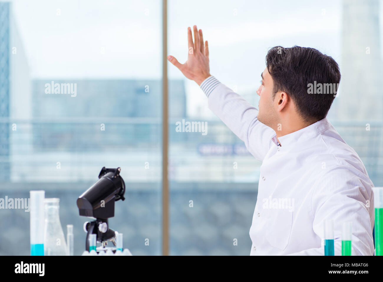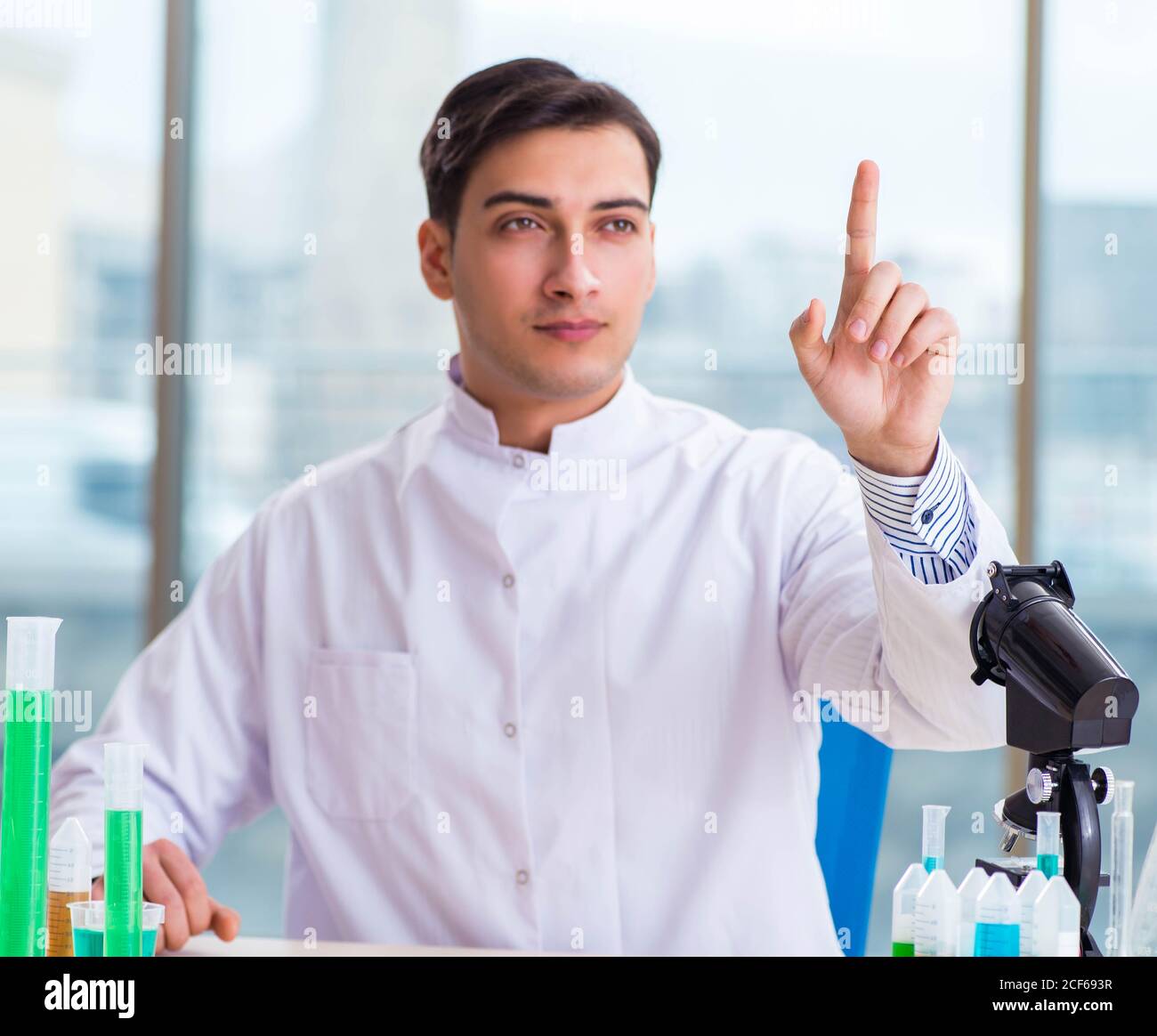 The young chemist pressing virtual buttons in lab Stock Photo - Alamy